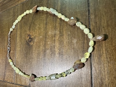 Prehnite, spiderweb jasper, Oregon opal necklace (4 images)