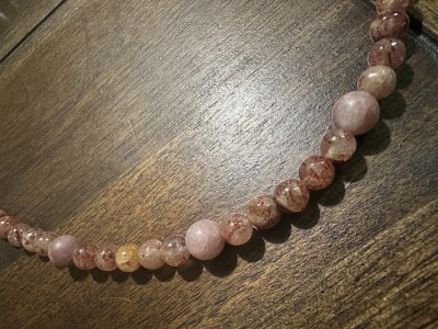 Cute necklace made with small and medium sized strawberry quartz beads, large lobster clasp - 20 3/4" long. It's perfect for Spring. It's also perfect year-round. Don't let anyone tell you that you can't wear what you wanna wear, when you wanna wear it, you rebel.
