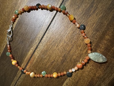 Stunning agate, serpentine, and prehnite necklace (5 images)